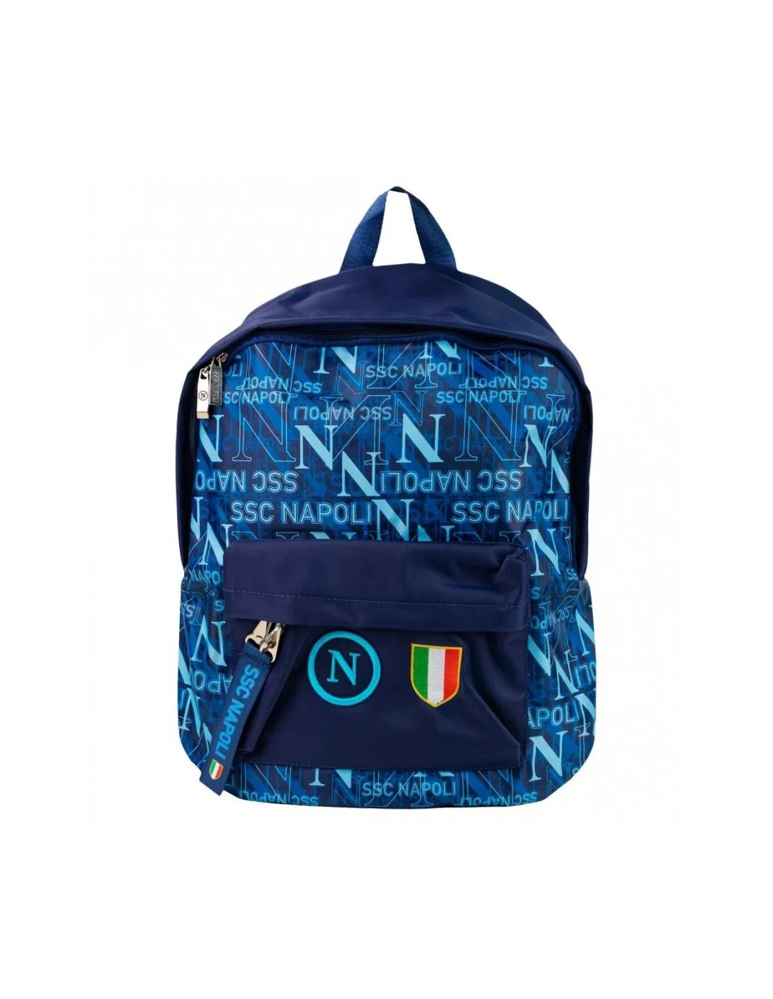 Official SSC Napoli backpack celebrating the club’s Italian championship title. Designed in navy blue with an all-over print of repeated “SSC Napoli” and “N” logos, it features a front zip pocket embroidered with the iconic SSC Napoli badge and the Italian Scudetto shield. Includes padded adjustable shoulder straps, top carry handle, and custom SSC Napoli zipper pulls. Ideal for school, leisure, or everyday use. Functional, stylish, and unmistakably Napoli.