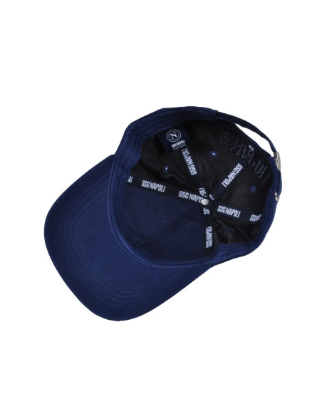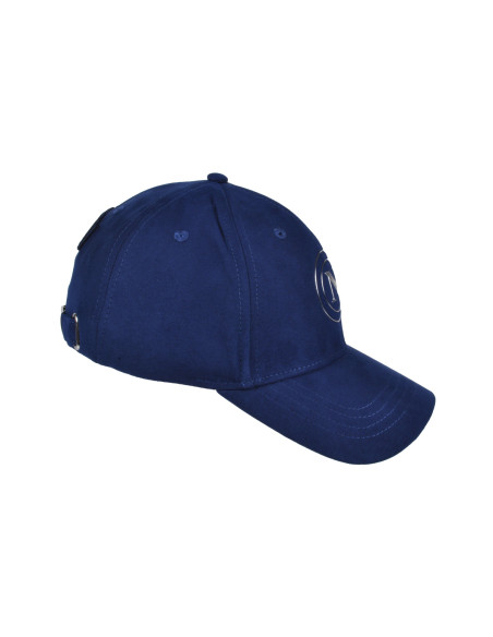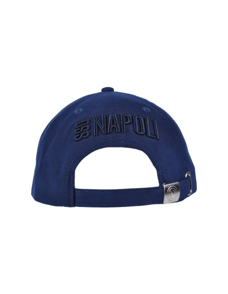 SSC Napoli Silver Alcantara Snapback Cap. Stylish blue alcantara cap featuring the SSC Napoli crest in a sleek silver finish. With a curved visor and structured panels, it blends elegance and comfort for everyday wear. The luxurious alcantara fabric gives it a premium look and feel, perfect for fans who value sophistication.