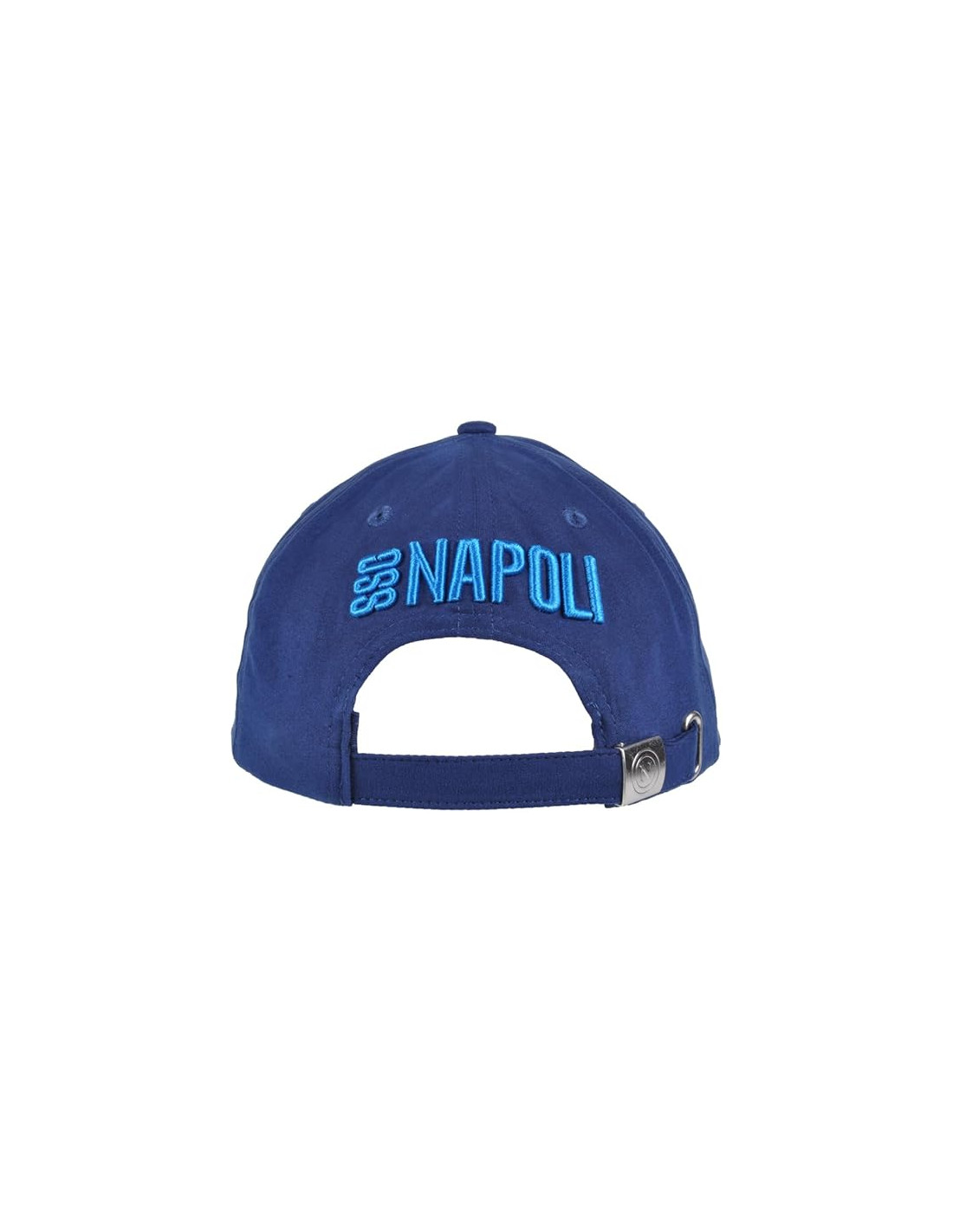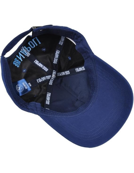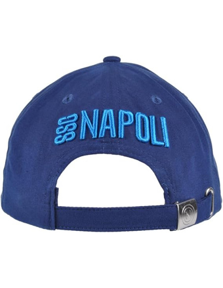 Official SSC Napoli snapback cap in refined suede-like blue fabric, featuring the embroidered light blue club logo on the front and “SSC Napoli” on the back. The metallic strap closure at the rear includes a custom club engraving, offering both comfort and style. Inspired by the classic club colours, this cap is perfect for casual wear and a great expression of Napoli pride. A stylish item for fans who value details and tradition.