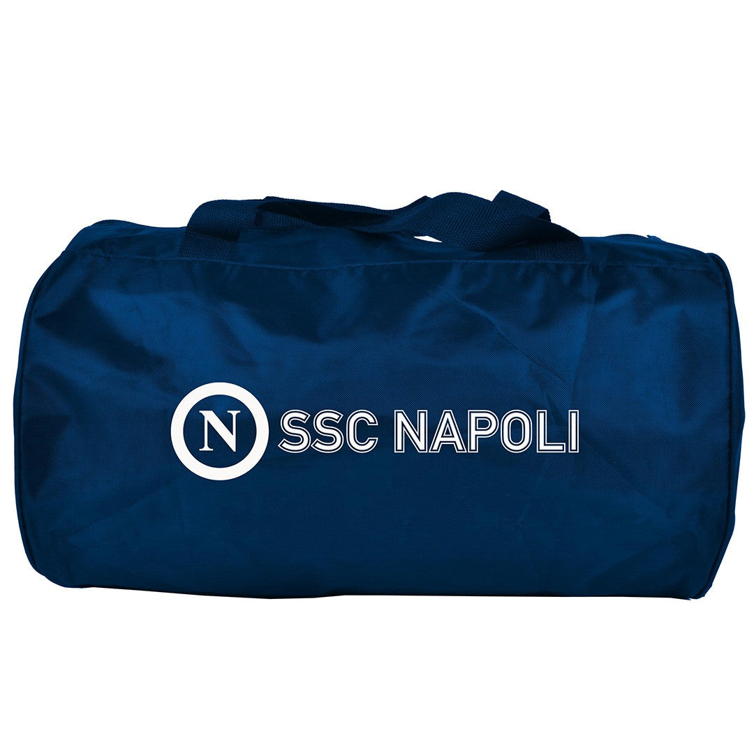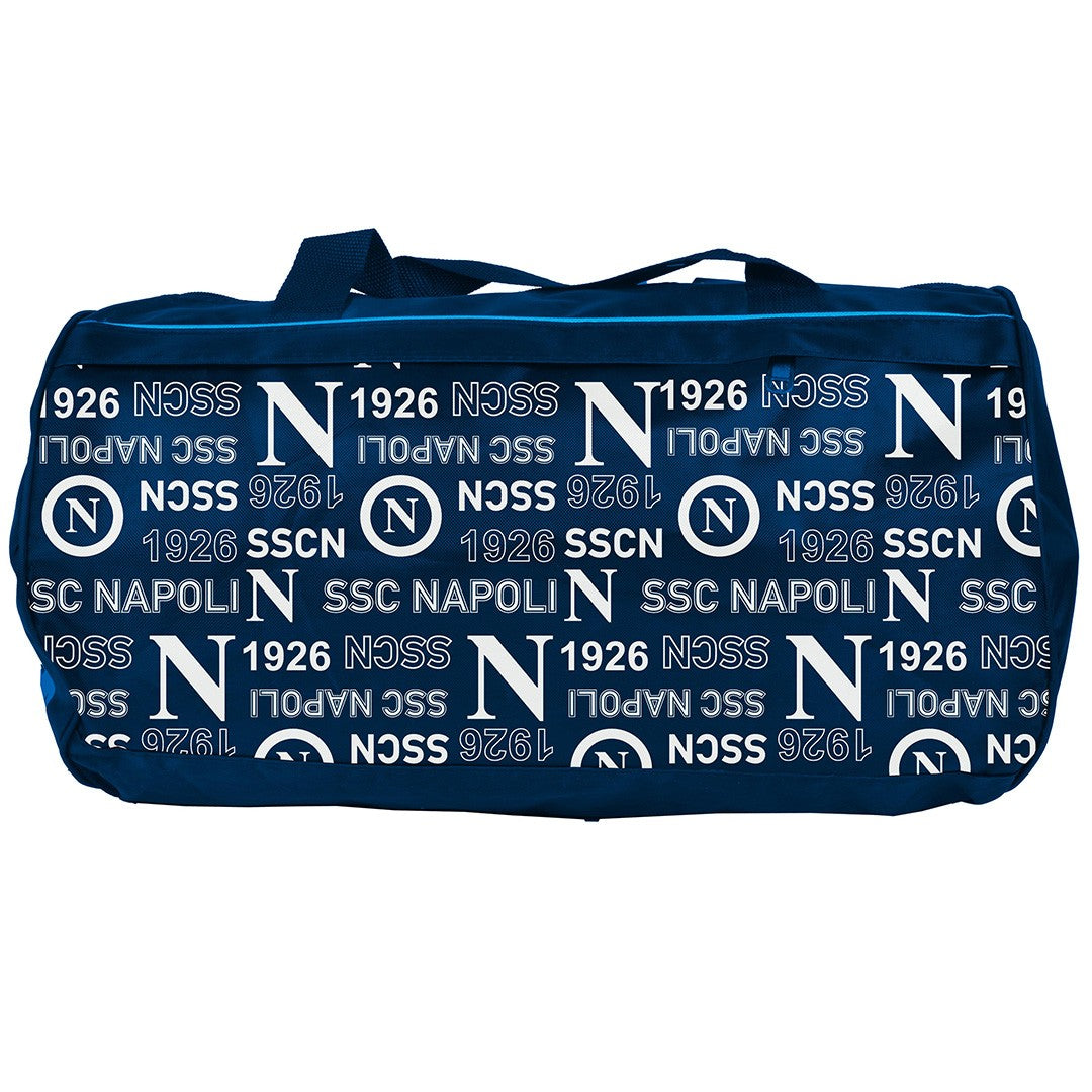 Borsone sportivo colore blu con logo “N” e scritta “SSC NAPOLI” sul lato principale; lato opposto con grafica all-over “SSC NAPOLI / SSCN / 1926”. Ampio scomparto centrale con chiusura a zip e doppi manici in tessuto per il trasporto. Materiale resistente, ideale per palestra, viaggio e tempo libero dei tifosi azzurri.