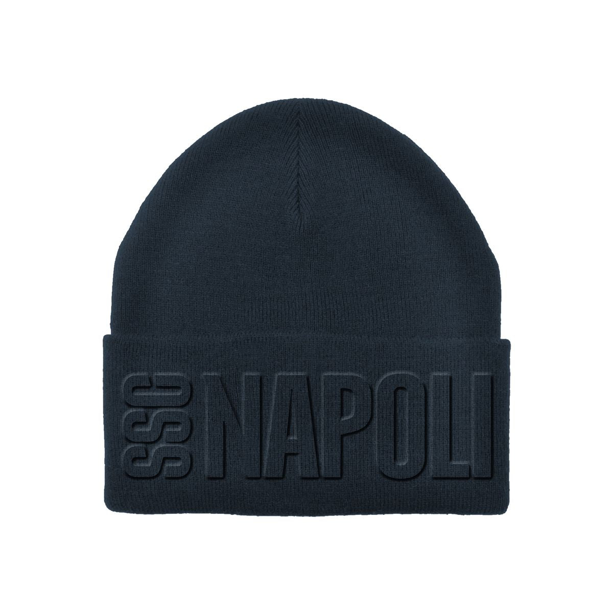 Cappello ufficiale SSC Napoli realizzato in morbida lana blu, con scritta “SSC NAPOLI” in rilievo (embossed) tono su tono sul risvolto frontale.