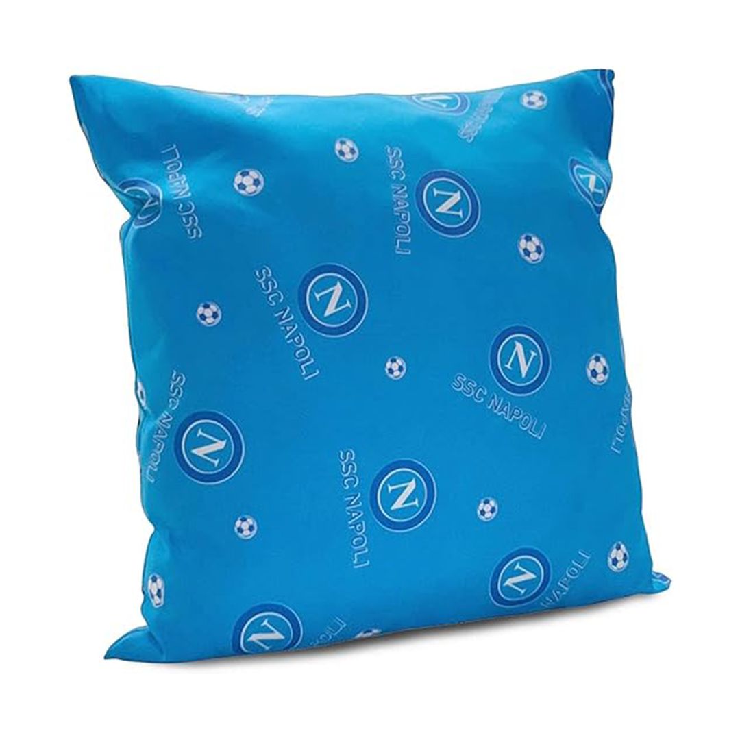 Cuscino arredo azzurro con stampa all-over “SSC NAPOLI”, logo “N” e piccoli palloni. Imbottitura morbida per un comfort piacevole su divano, letto o poltrona. Ideale per la cameretta o l’angolo relax dei tifosi azzurri. Design resistente e facile da abbinare ad altri accessori del Napoli.