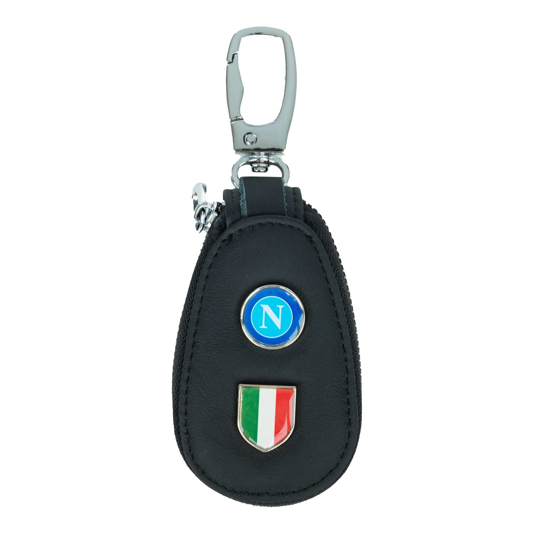 Portachiavi ufficiale SSC Napoli realizzato in morbida pelle nera con chiusura a zip.