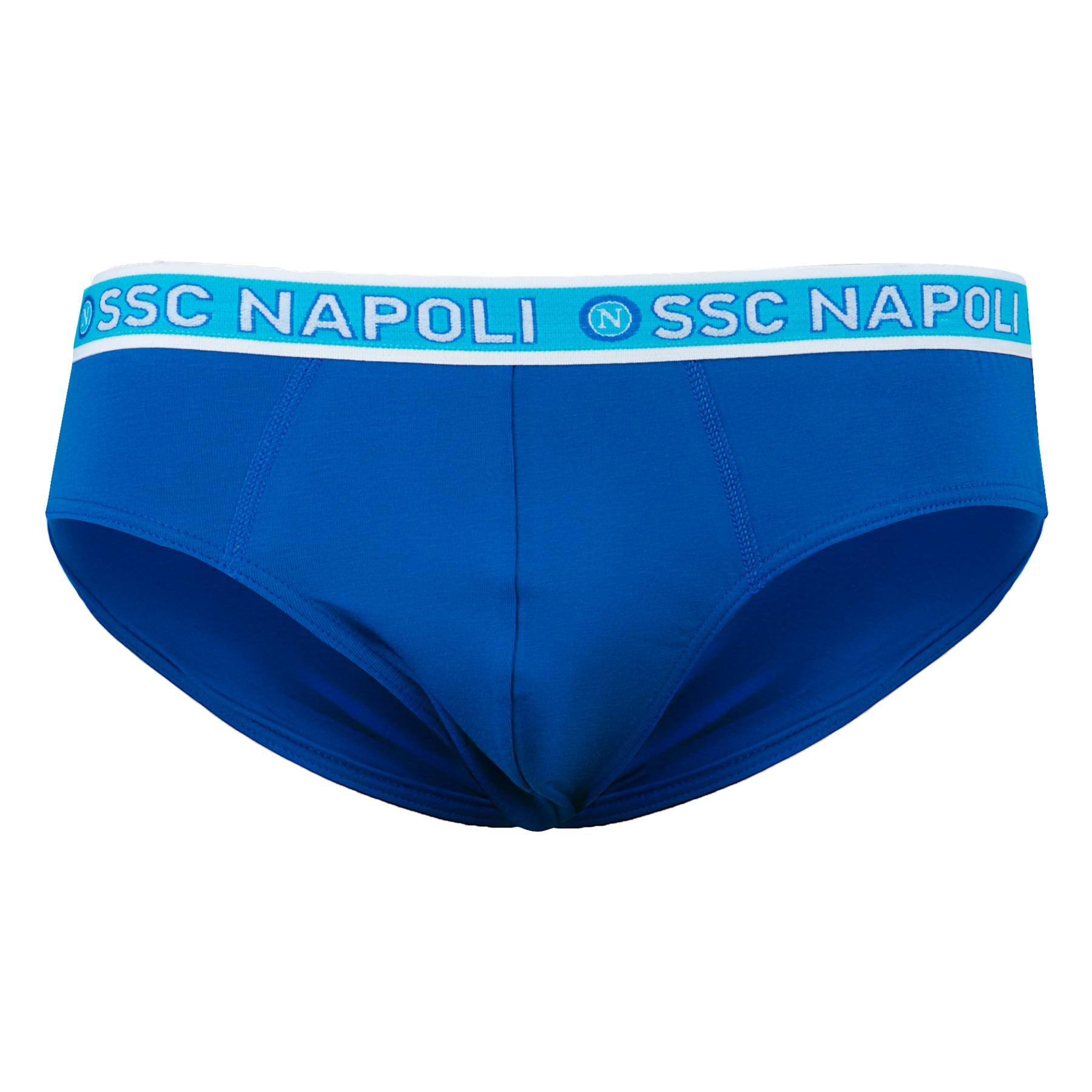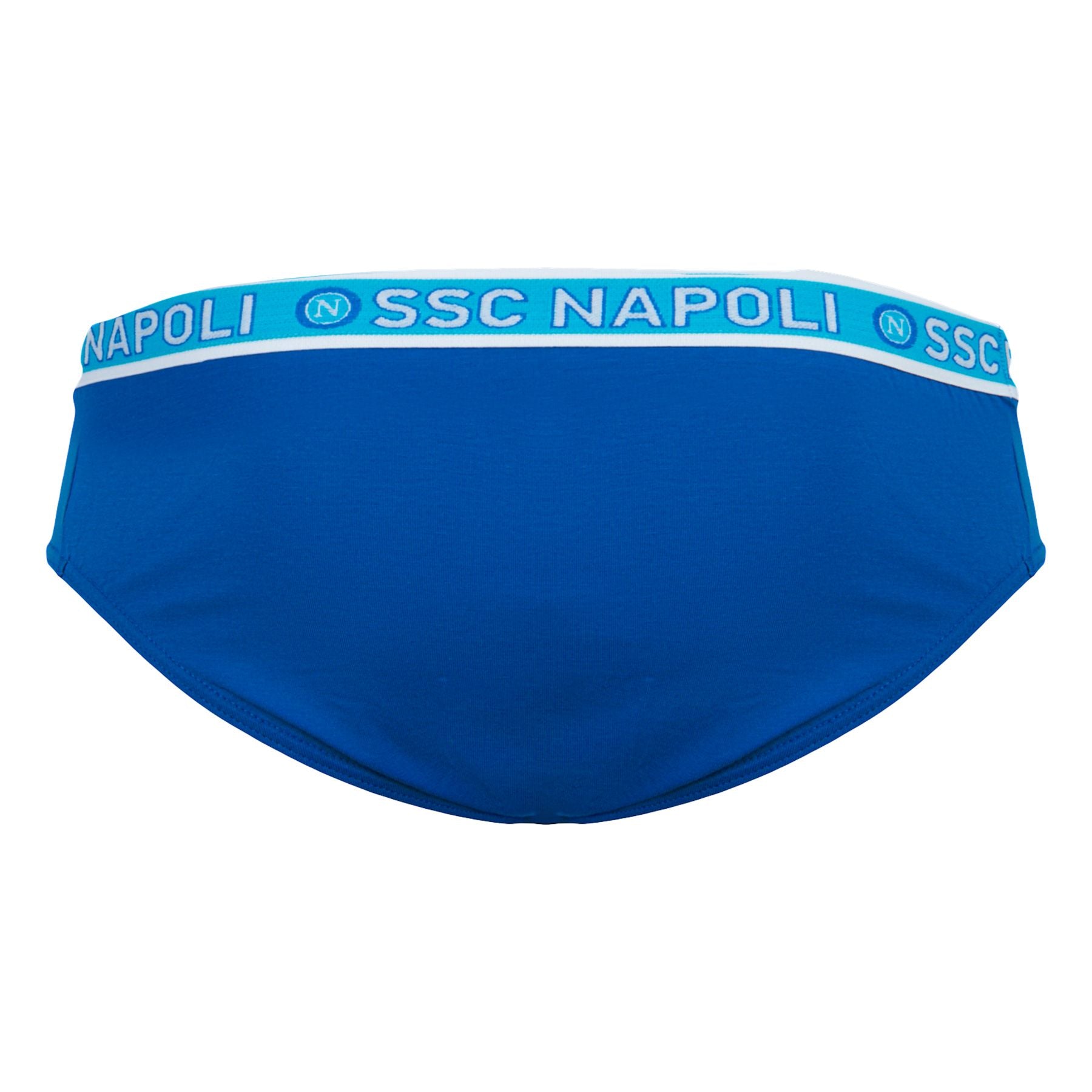 Slip bambino in colore blu royal con fascia elastica in vita bianca e inserti jacquard azzurri con scritta “SSC NAPOLI” e logo “N” ripetuto. Struttura a taglio classico che assicura libertà di movimento, cuciture piatte anti-irritazione. Realizzato in morbido cotone elasticizzato, traspirante e confortevole per l’uso quotidiano.
