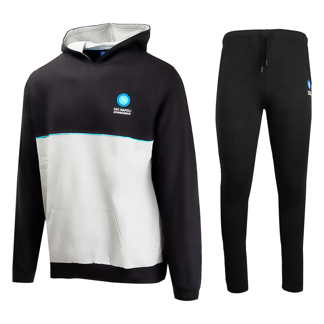 Tuta Bambino Homewear Pigiama Bicolore Nera con Cappuccio SSC Napoli