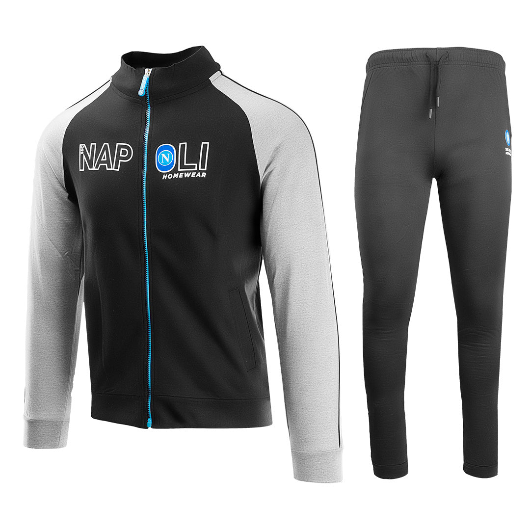 Tuta Bambino Homewear Pigiama Full Zip SSC Napoli Nero e Grigio