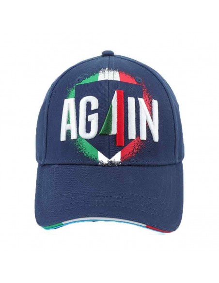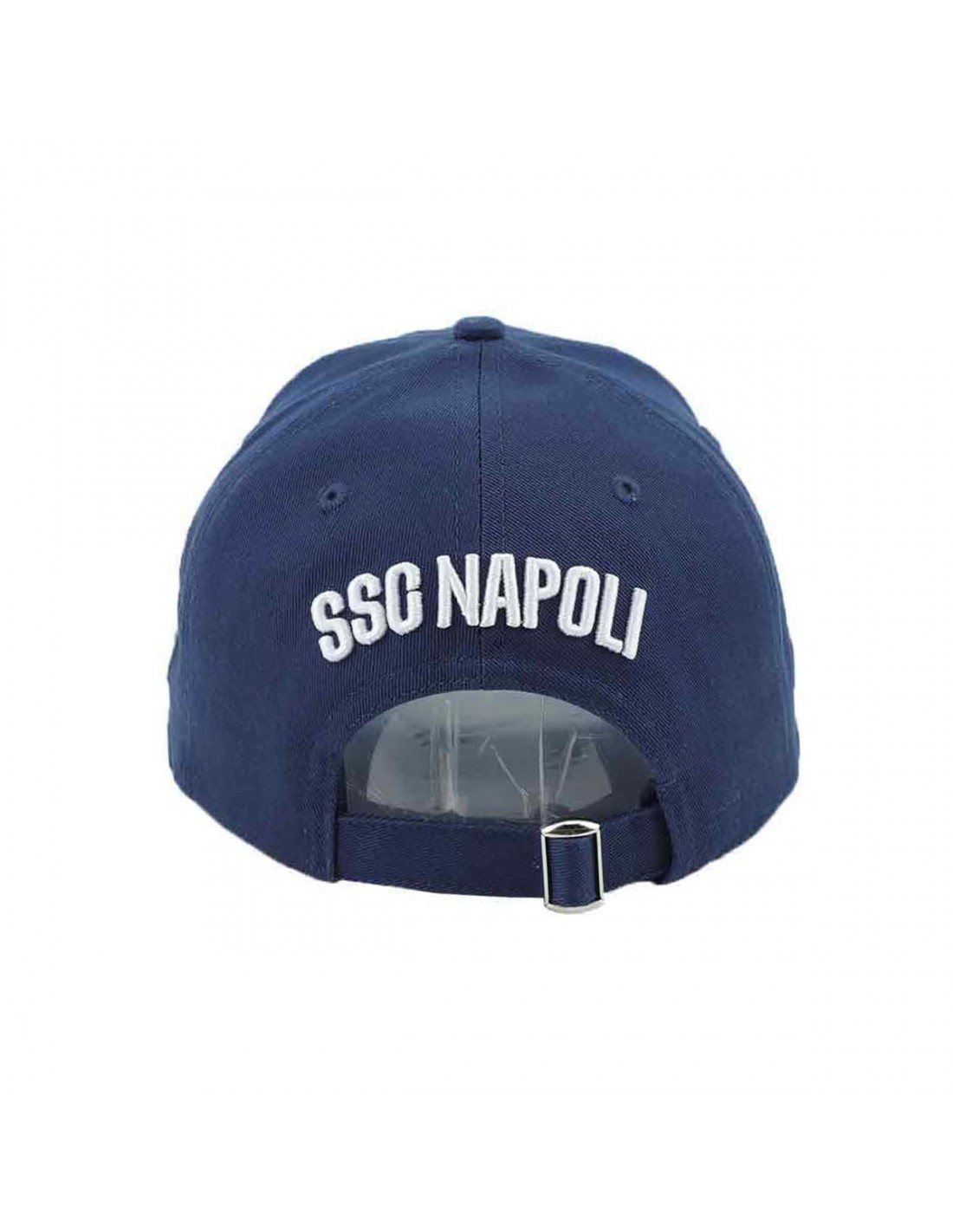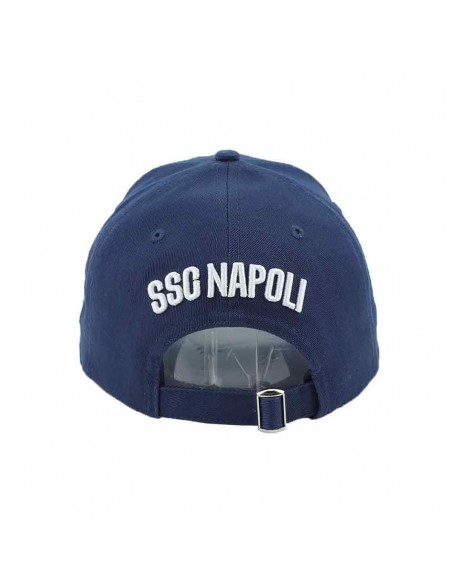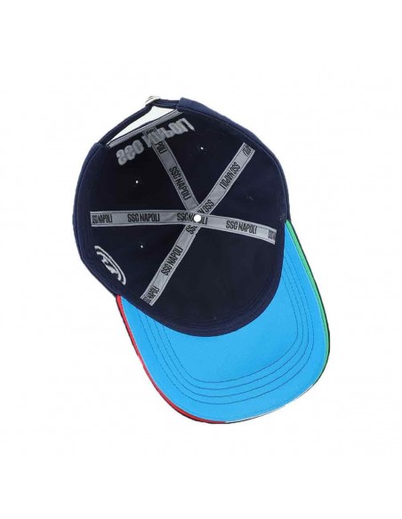 Official SSC Napoli navy blue snapback hat featuring bold 3D “AGAIN” embroidery and stylized tricolor crest on the front. Embroidered “N” logo on the left side and “SSC NAPOLI” on the back. Multicolor visor with light blue underside. Inner SSC Napoli branded taping for structure and comfort.
