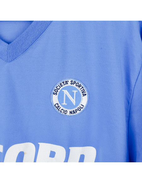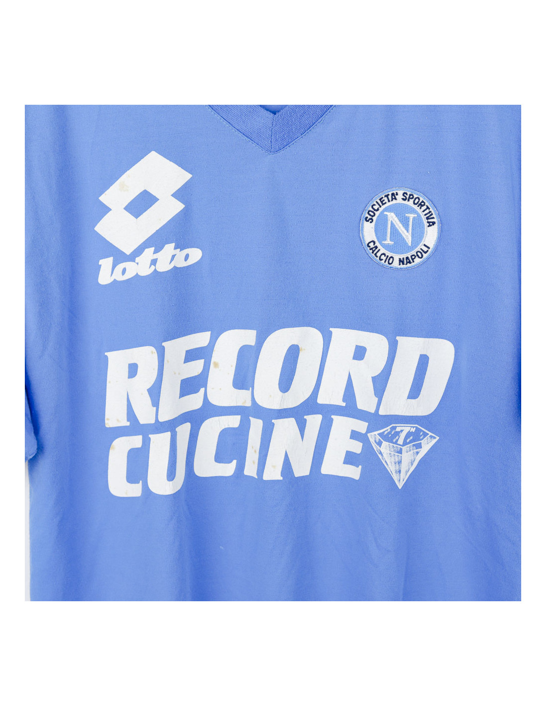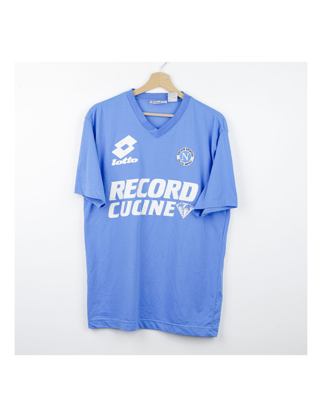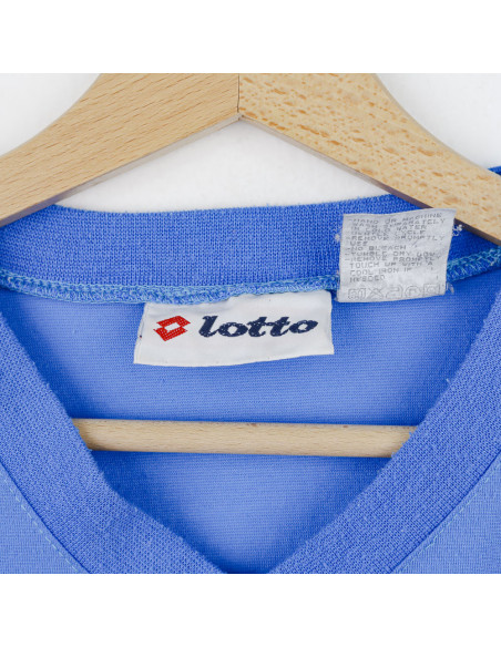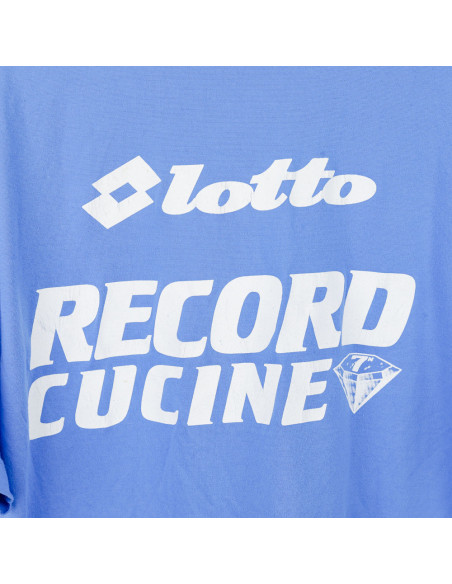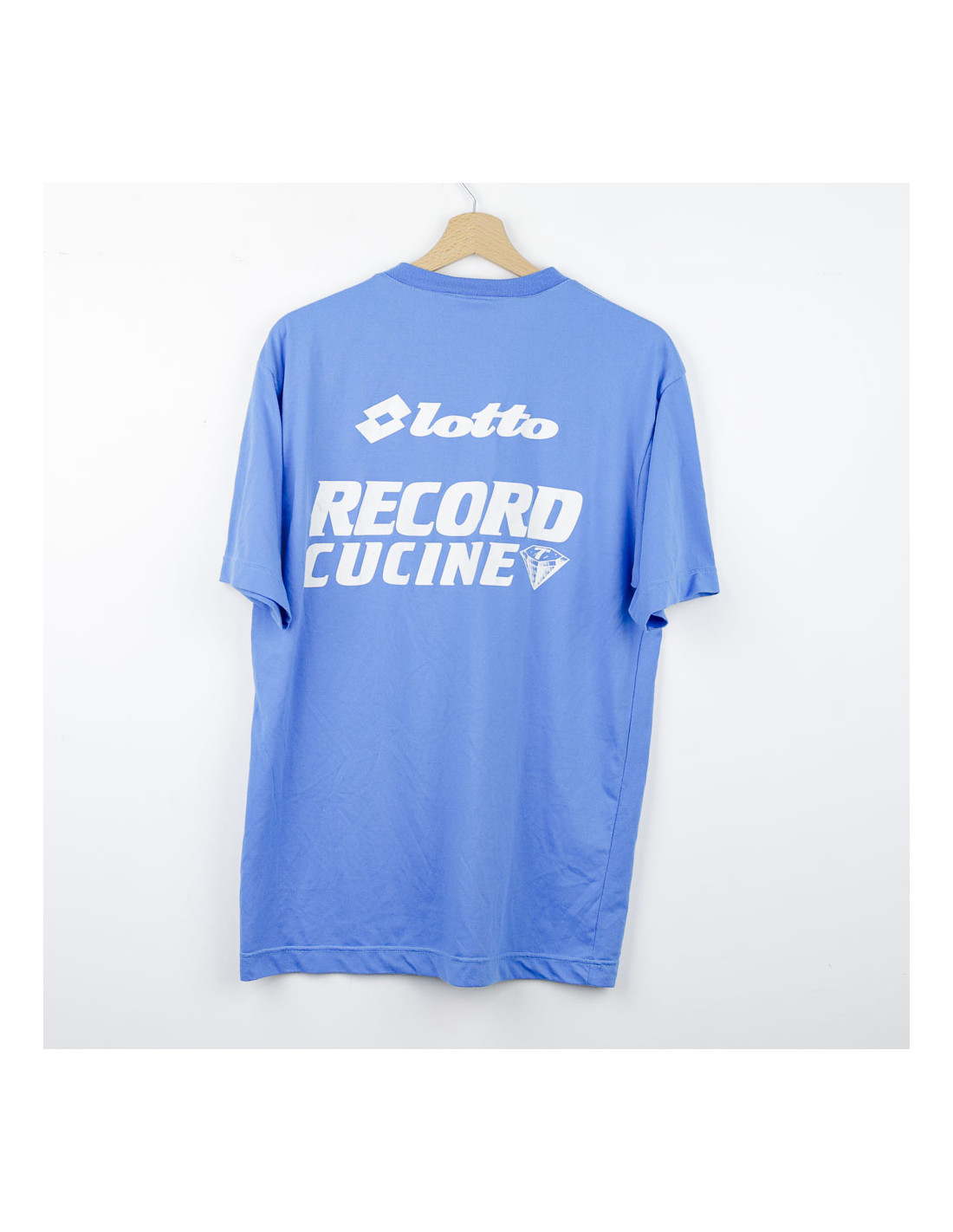 Napoli training jersey made by Lotto for the 1995/1996 season. The light blue jersey features the club crest on the left chest, Lotto as the technical sponsor, and Record Cucine as the commercial sponsor, both also applied on the back. Size L
