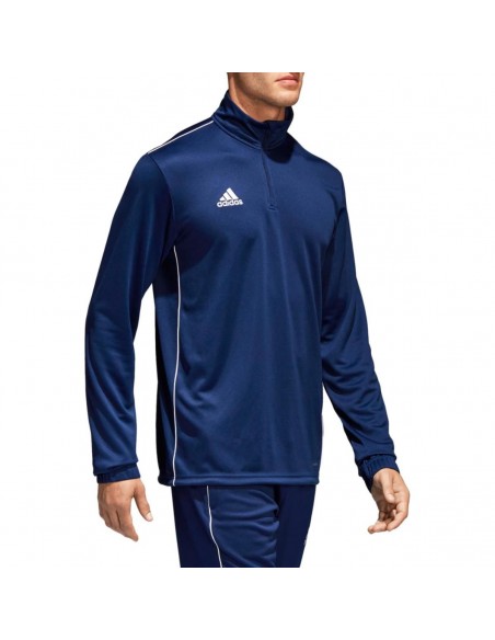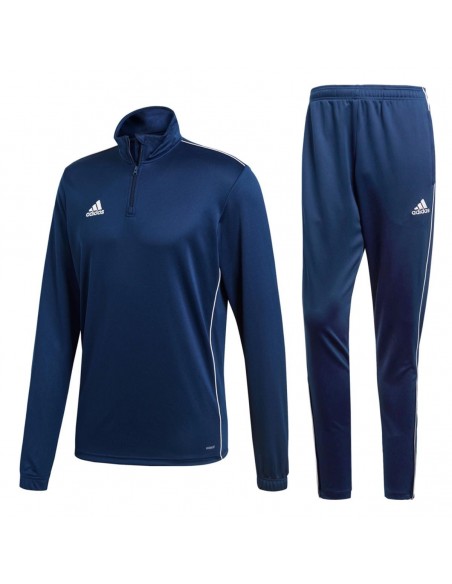 La maglia della tuta di colore blu scuro mantiene caldo il corpo nelle stagioni più fredde, presenta un piping a contrasto ed il logo Adidas